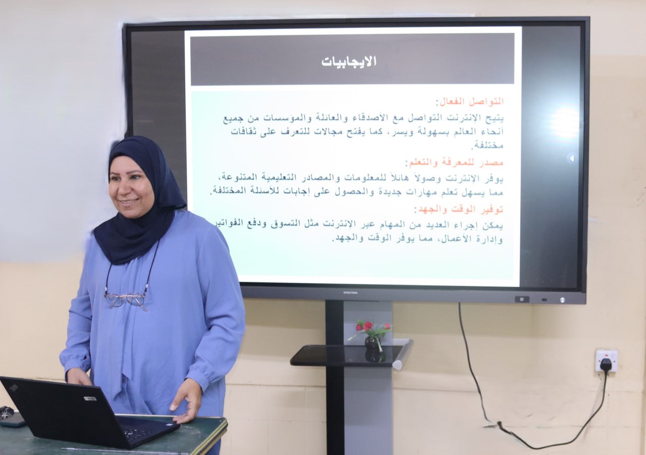 نظمت كلية طب الاسنان في جامعة بغداد- لجنة التعايش والسلم المجتمعي ندوة علمية بعنوان “الانترنيت بين السلبيات والايجابيات” قدمتها م.د. زينب علي سلمان، وبحضور عدد من تدريسيي وموظفي الكلية.