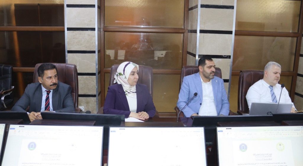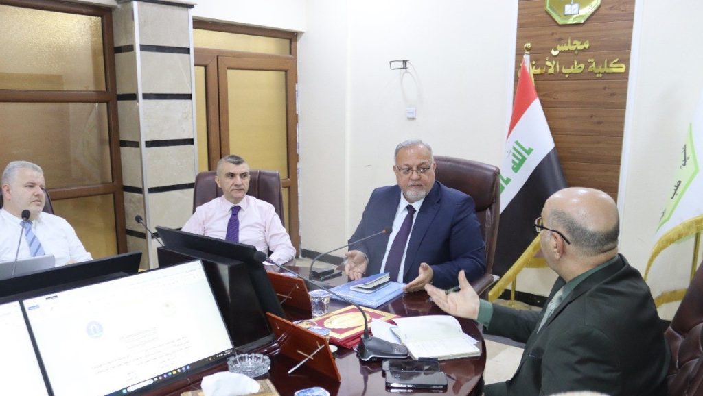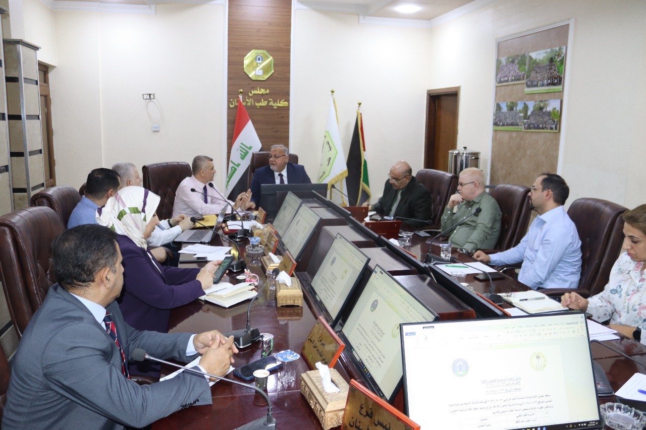 عقد الاجتماع الدوري لمجلس كلية طب الاسنان في جامعة بغداد حيث انعقدت الجلسة السادسة يوم الخميس الموافق 23/10/2025 برئاسة الأستاذ الدكتور رغد عبد الرزاق محمد المحترم عميد الكلية والمساعد الإداري لرئيس جامعة بغداد، وبحضور السادة المعاونين ورؤساء الفروع العلمية.