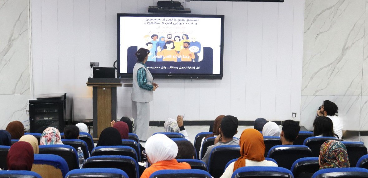 نظمت كلية طب الاسنان في جامعة بغداد – شعبة الاعلام والاتصال الحكومي وبالتعاون مع وحدة الارشاد النفسي الجامعي ندوة بعنوان ” أهمية الدعم المجتمعي لشريحة الصم والبكم” القتها الاستاذ المساعد منى عبد اللة سليم وبحضور عدد من طلبة الكلية .