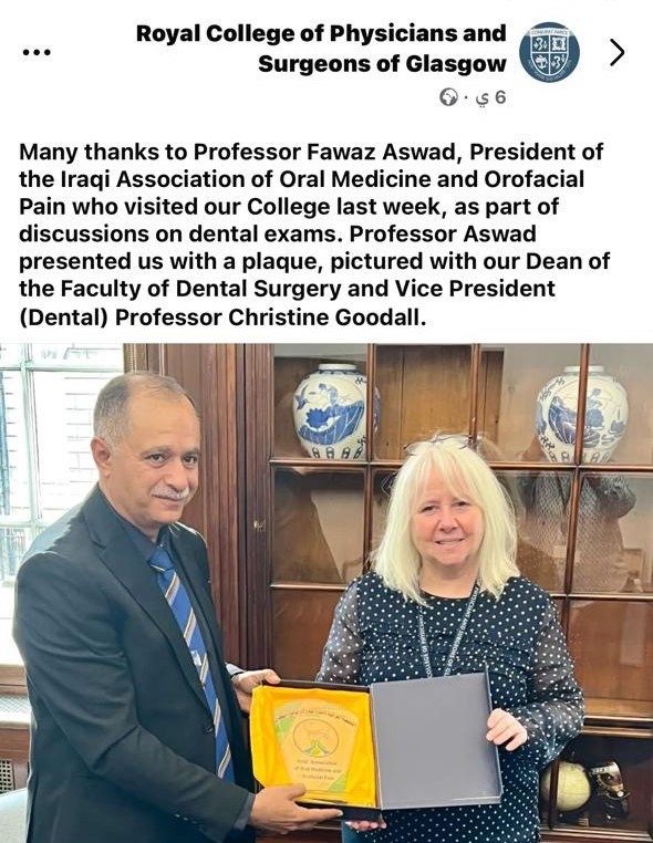 تؤكد كلية طب الأسنان بجامعة بغداد استمرارها في مدّ جسور التعاون مع المؤسسات العلمية العالمية، بما يخدم المسيرة الأكاديمية ويعزز مكانة الكلية على المستوى الدولي.