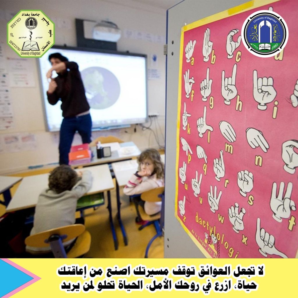 نظمت كلية طب الاسنان في جامعة بغداد، شعبةُ الإعلام والاتصال الحكومي، وبالتعاون مع وحدة ذوي الاحتياجات الخاصة، حملاتٍ توعوية وتثقيفية عبر نشر مجموعة من البوسترات الإلكترونية على منصات التواصل الاجتماعي واللوحات الضوئية الإلكترونية، وذلك دعمًا لشريحة الصم والبكم.