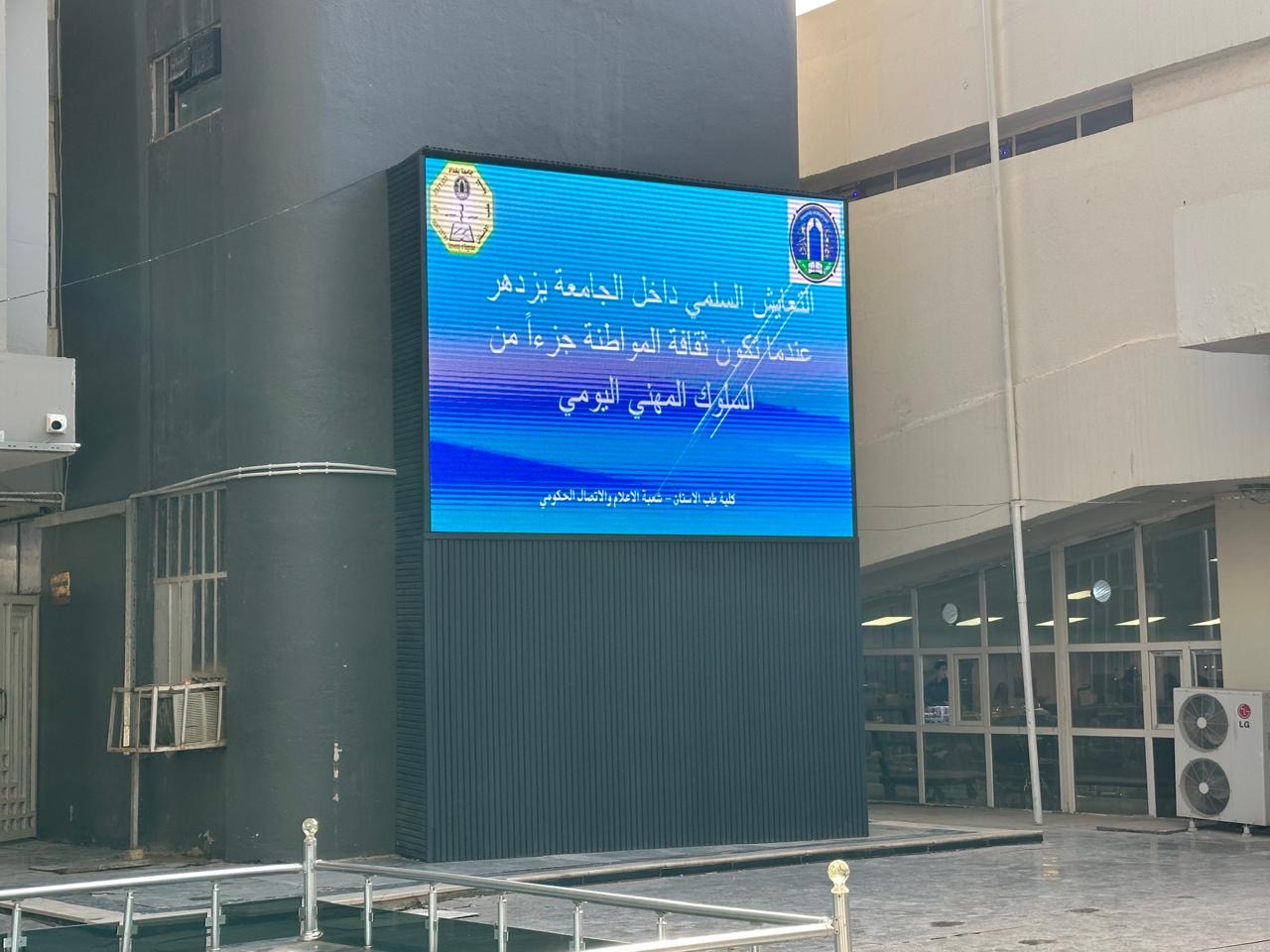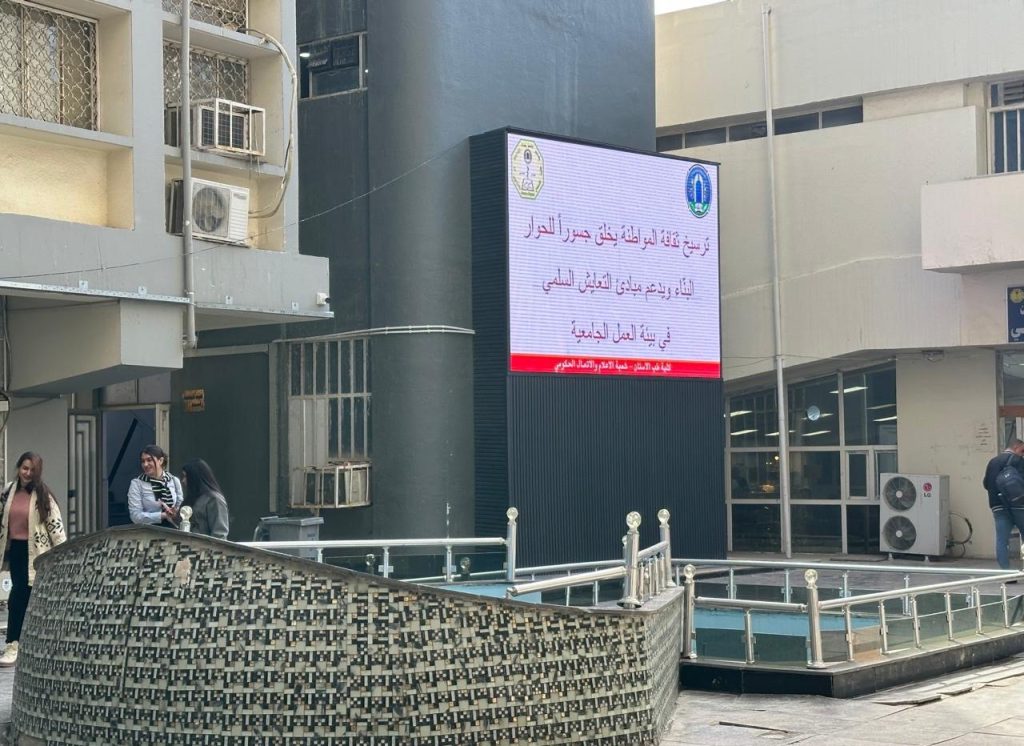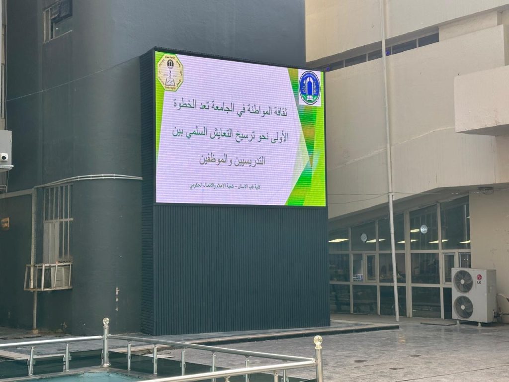 نظّمت كلية طب الأسنان في جامعة بغداد / شعبة الإعلام والاتصال الحكومي، حملاتٍ توعوية وتثقيفية شملت نشر مجموعة من البوسترات الإلكترونية على منصات اللوحات الضوئية داخل الكلية، بهدف ترسيخ ثقافة المواطنة وتعزيز قيم التعايش السلمي بين أفراد المجتمع الجامعي.