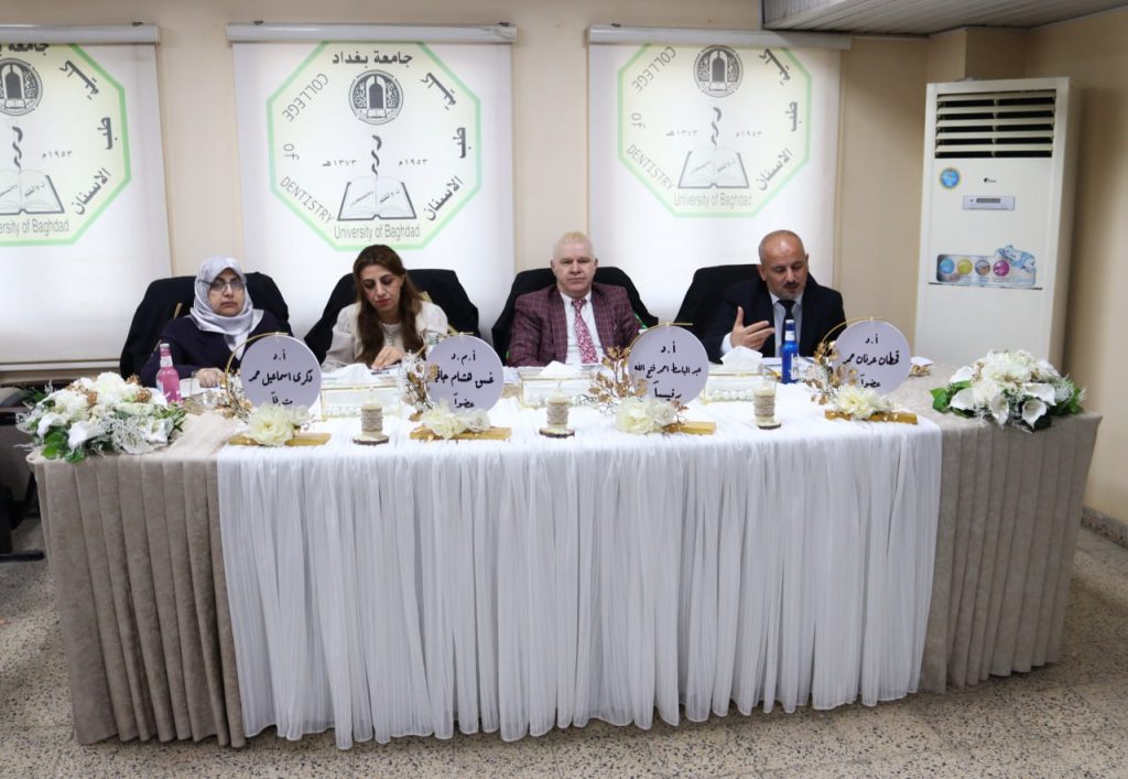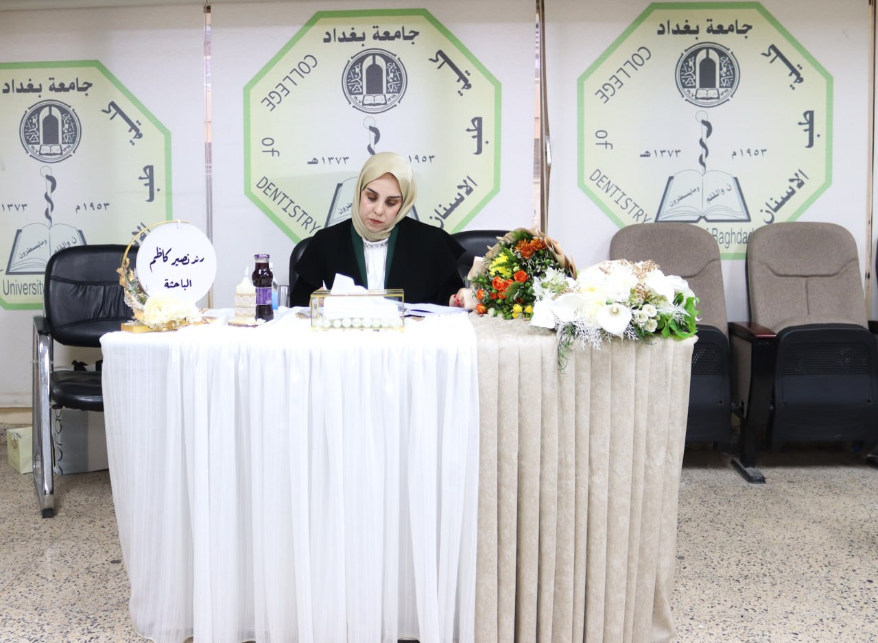 ناقشت كلية طب الاسنان بجامعة بغداد رسالة الماجستير الموسومة ” تأثير جزيئات تيتانات الباريوم النانوية على الخصائص الميكانيكية والفيزيائية لأكريليك قاعدة طقم الأسنان المطبوع ثلاثي الأبعاد” (دراسة مختبرية)، للطالبة رند نصير كاظم.