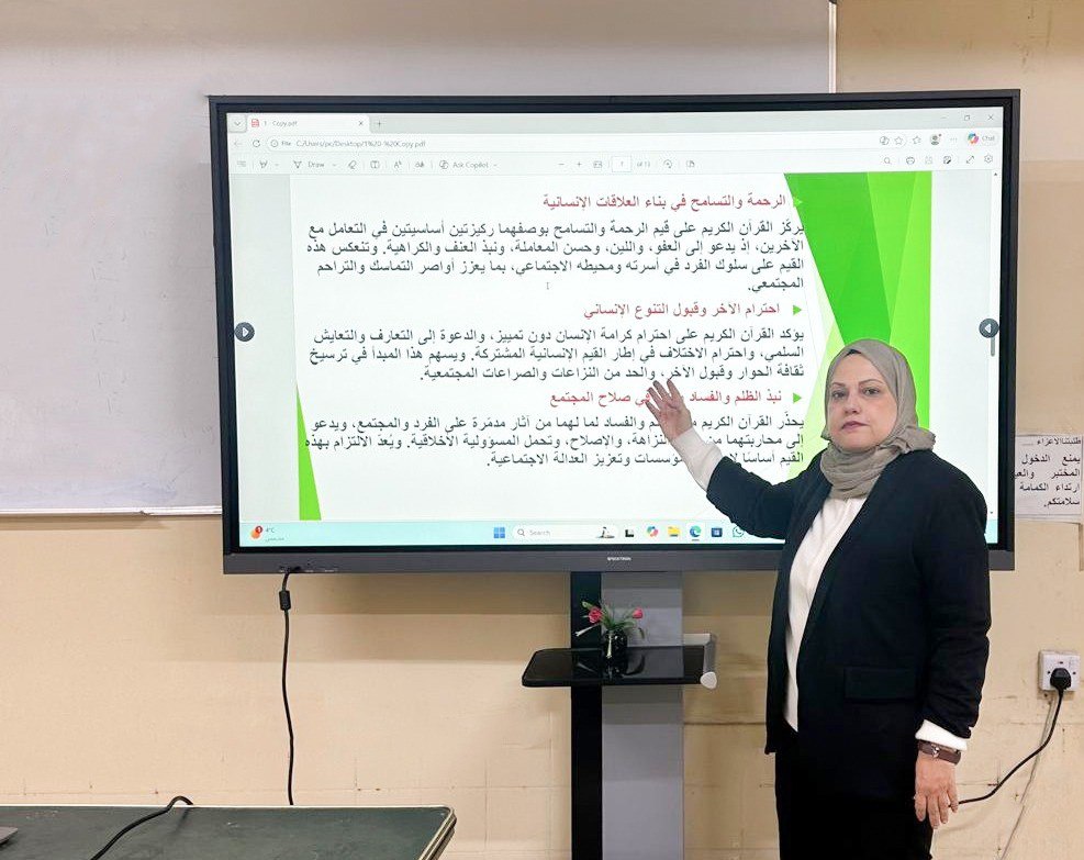 نظّمت كلية طب الأسنان في جامعة بغداد – شعبة الاعلام والاتصال الحكومي وبمناسبة اليوم الوطني للقران الكريم ندوة بعنوان “القرآن الكريم وبناء الإنسان والمجتمع في اطار منظومة القيم والهوية الاسلامية” القتها أ.م.د. مها فيصل احمد وبحضور عدد من طلبة وموظفي الكلية .