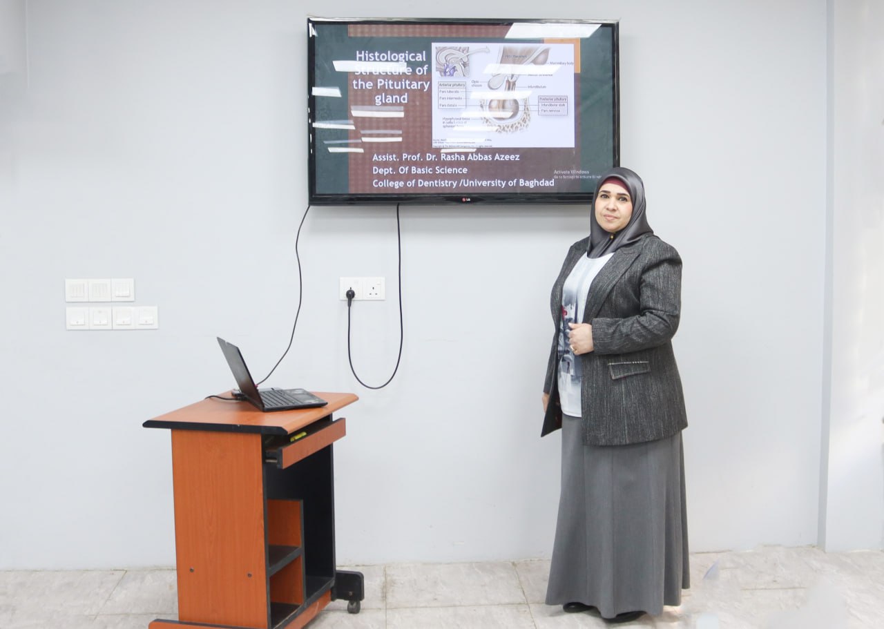 نظمت كلية طب الاسنان في جامعة بغداد ندوة بعنوان” التركيب النسيجي للغدة النخامية” القتها أ.م.د. رشا عباس عزيز وبحضور عدد من تدريسي الكلية.