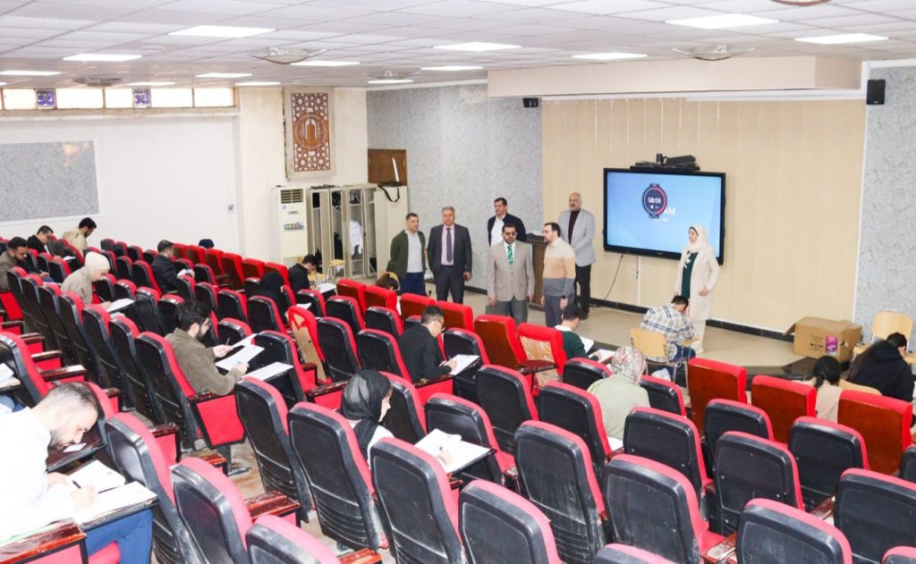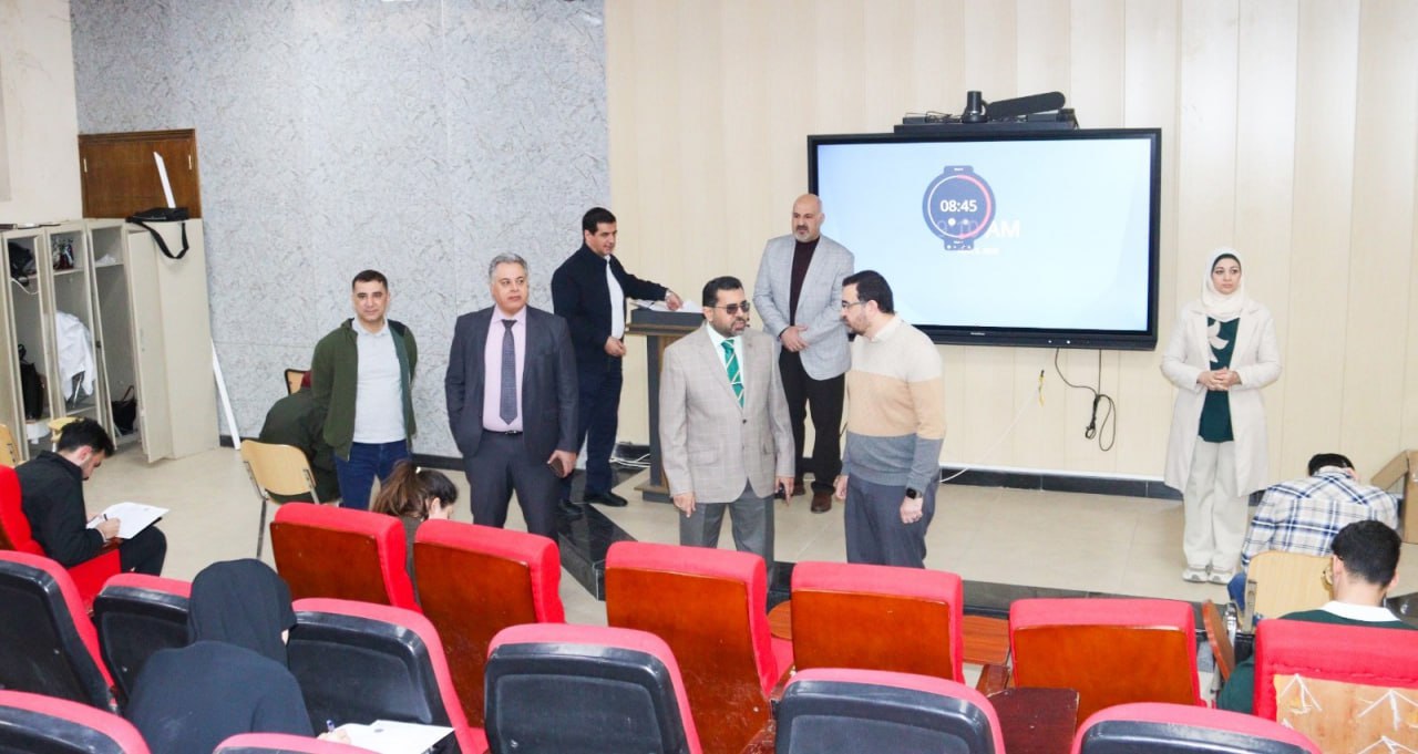 واطلع السيد العميد المحترم خلال جولته على القاعة الامتحانية وآلية تنظيم دخول الطلبة وتوزيعهم داخل القاعة، مؤكدًا على ضرورة الالتزام بالضوابط والتعليمات الامتحانية بما يضمن تحقيق أعلى درجات الشفافية والانضباط، فضلًا عن توفير بيئة امتحانية مناسبة تسهم في أداء الطلبة لامتحاناتهم بانسيابية وهدوء.