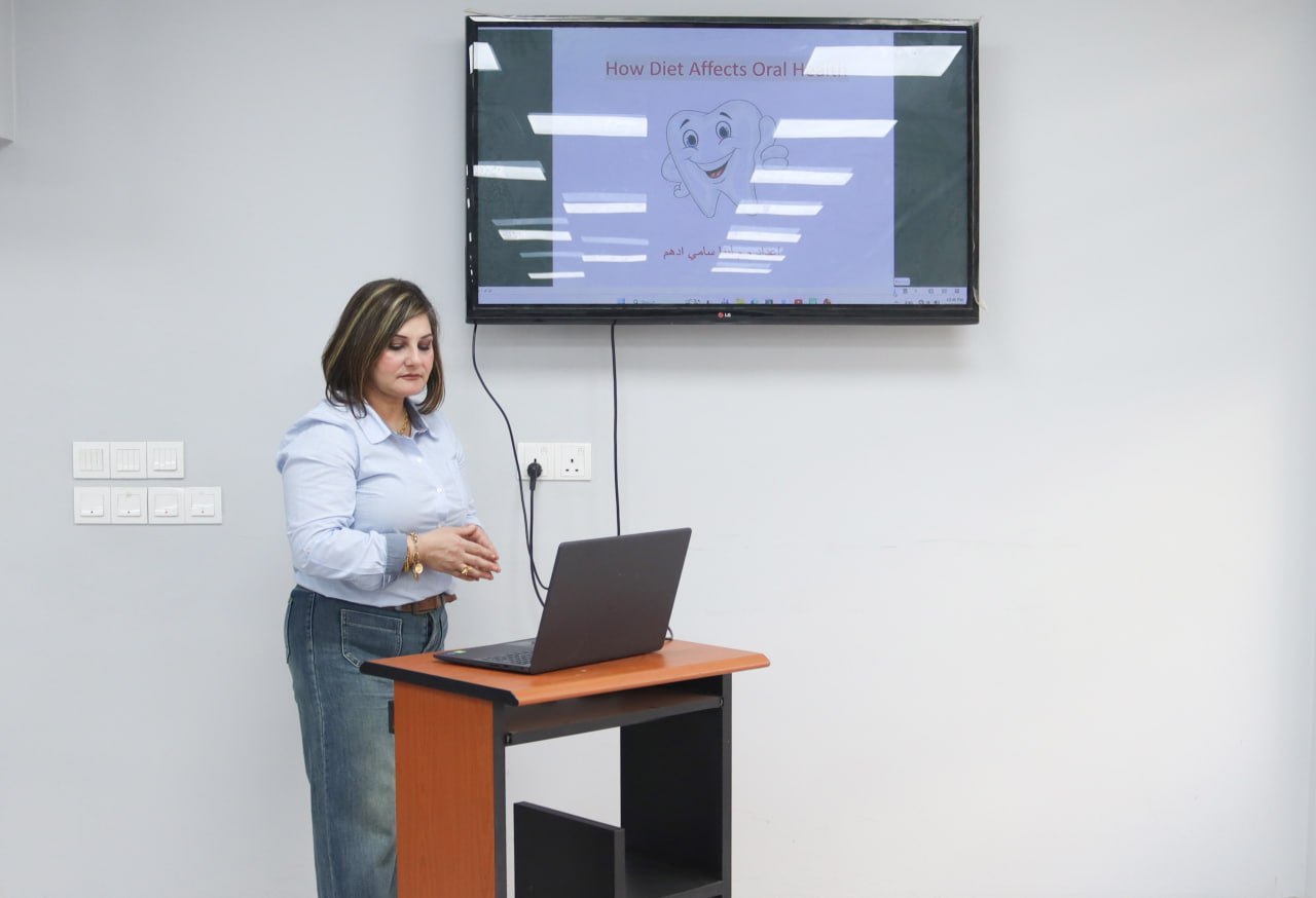 نظّمت كلية طب الأسنان في جامعة بغداد ندوة علمية بعنوان «تأثير النظام الغذائي على صحة الفم»، قدّمتها المدرس المساعد لينا سامي أدهم، وبحضور عدد من تدريسيي الكلية.