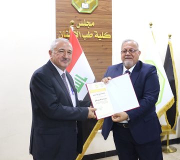 تم استضافة الاستاذ الدكتور رجاء كمونة اخصائي جراحة الفم والوجه والفكين رئيس المجلس العراقي لجراحة الوجه والفكين السابق في فرع الجراحة لالقاء محاضرة لطلبة المرحلة الخامسة يوم الاثنين المصادف 16 . 12. 2013 في قاعة رقم 1 حول موضوع Facial Injuries وقد تم عرض الحالات المعقدة والمتعددة التي اجريت من قبل الاستاذ الدكتور رجاء كمونة مع شرح لكيفية عمل الفحوصات والتشخيص واجراء العمليات.