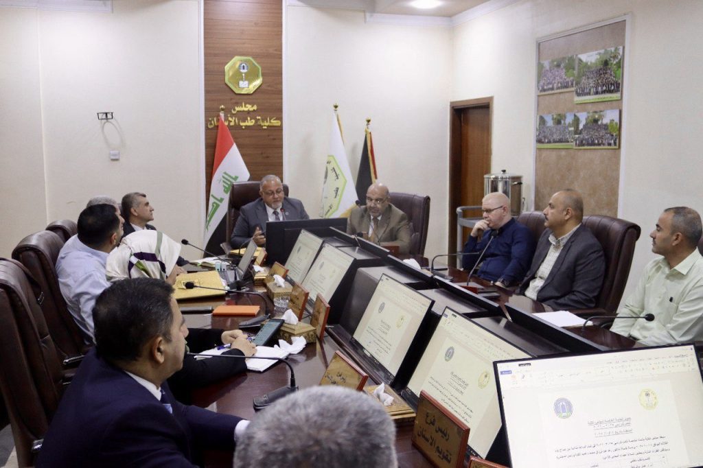 عقد الاجتماع الدوري لمجلس كلية طب الاسنان في جامعة بغداد حيث انعقدت الجلسة الخامسة يوم الثلاثاء الموافق 14/10/2025 برئاسة الأستاذ الدكتور رغد عبد الرزاق محمد المحترم عميد الكلية والمساعد الإداري لرئيس جامعة بغداد، وبحضور السادة المعاونين ورؤساء الفروع العلمية.